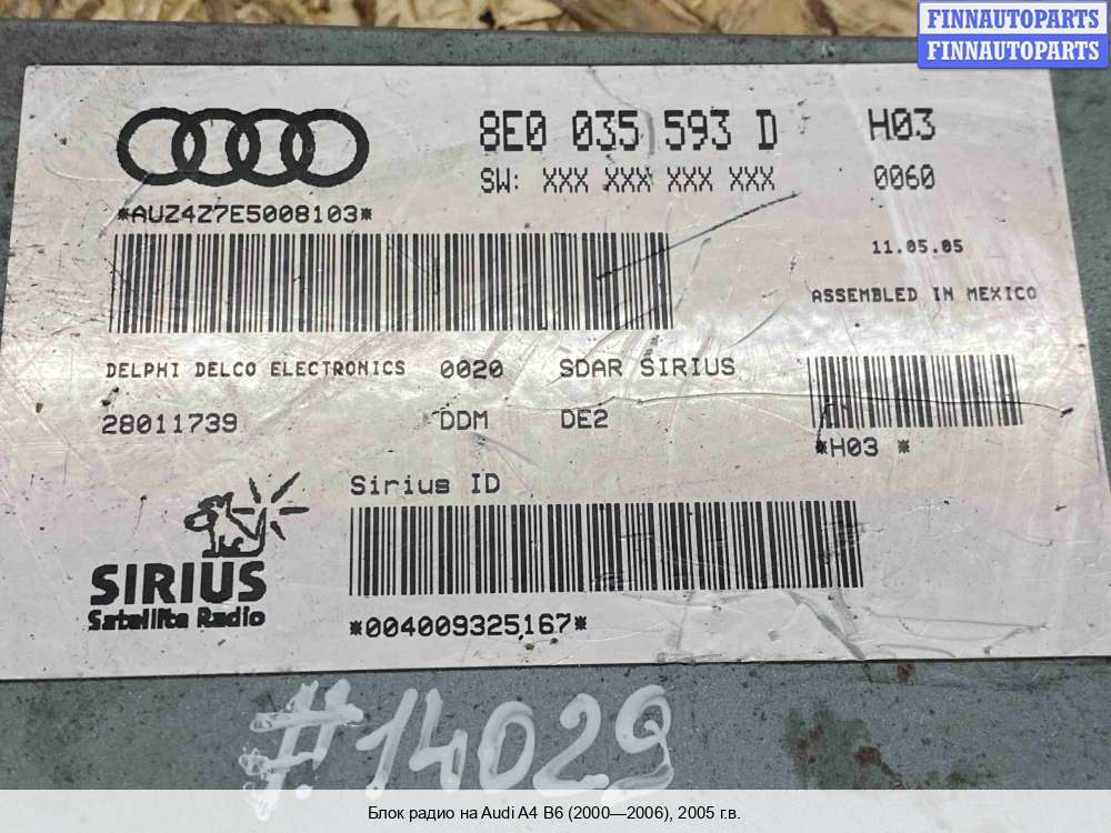 2005; Дизель; 1.9; AVF; Универсал; ; серебристый; 2005, 1.9л, Дизель, AVF, 8E9035382, Универсал, серебристый, Фото не актуально, с запчасти отделены: Усилитель звука, царапины,, царапины