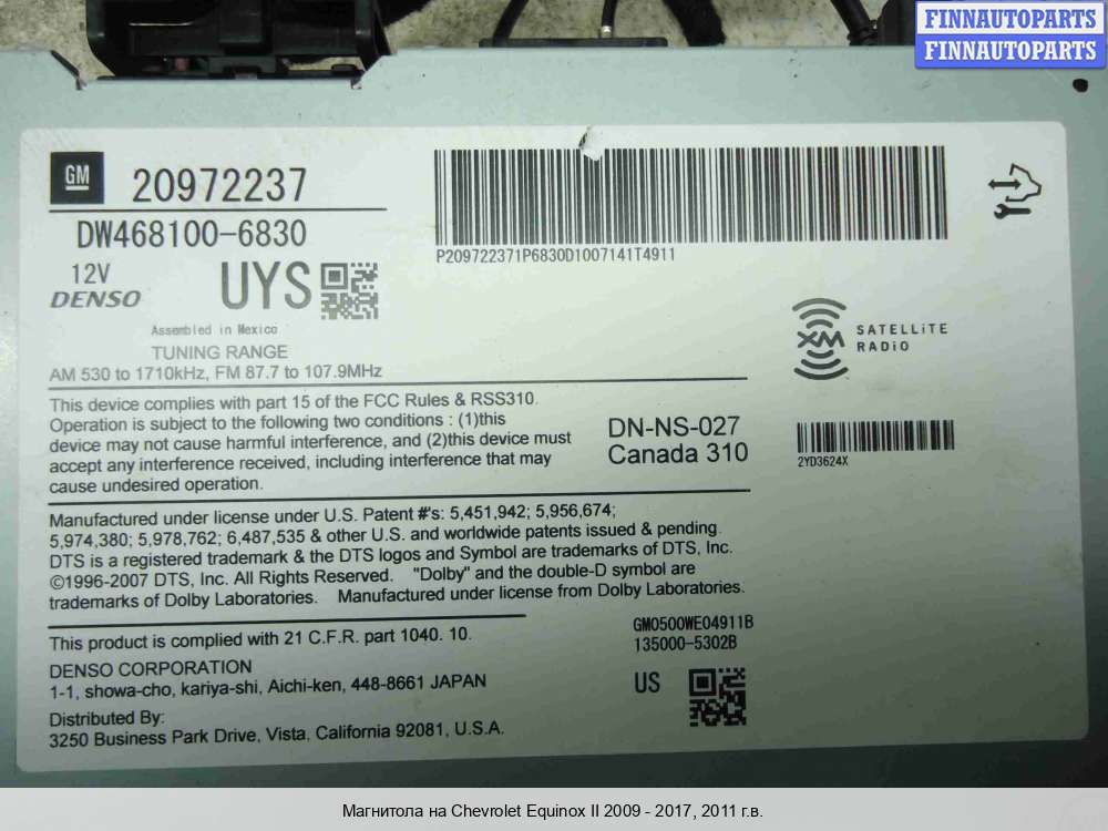 магнитола | Chevrolet Equinox 2 (2009 - 2017) |