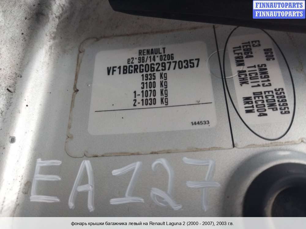 Компания FINNAUTOPARTS занимается продажей контрактных (б/у, бывших в употреблении) запчастей для иномарок. В нашей компании продаются только оригинальные запчасти из Европы, Японии и Кореи, которые не имеют пробега по РФ. Если вы хотите приобрести фонарь крышки багажника (левый) для а/м Рено Лагуна 2, смело обращайтесь в нашу компанию. Все наши менеджеры — профессионалы своего дела, и с удовольствием помогут вам купить запчасти, в том числе, фонари крышки багажника левые, на Renault Laguna II и другие автомобили.