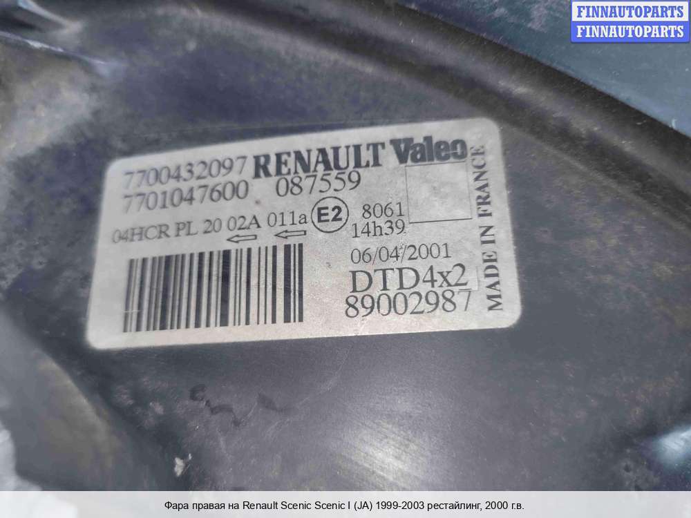 Фара правая | Renault Scenic Scenic I (JA) 1999-2003 рестайлинг |