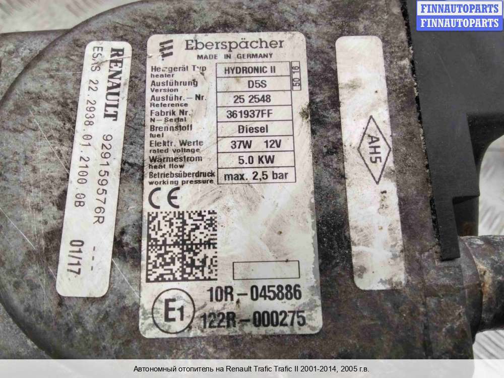 2005; Дизель; 1.9; DCi; ; Микроавтобус. 5 KW. Eberspraher. Hydronic 2. Дефект корпуса (см. фото). Без права на возврат. Из Германии.