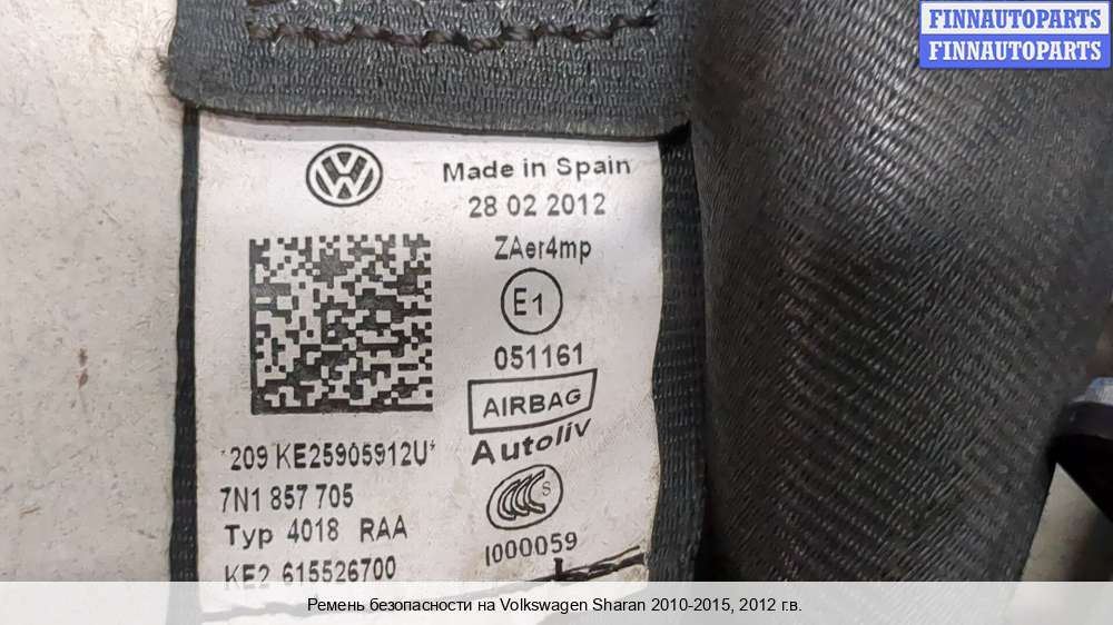 ремень безопасности с пиропатроном сиденья переднего | VOLKSWAGEN SHARAN 3 |